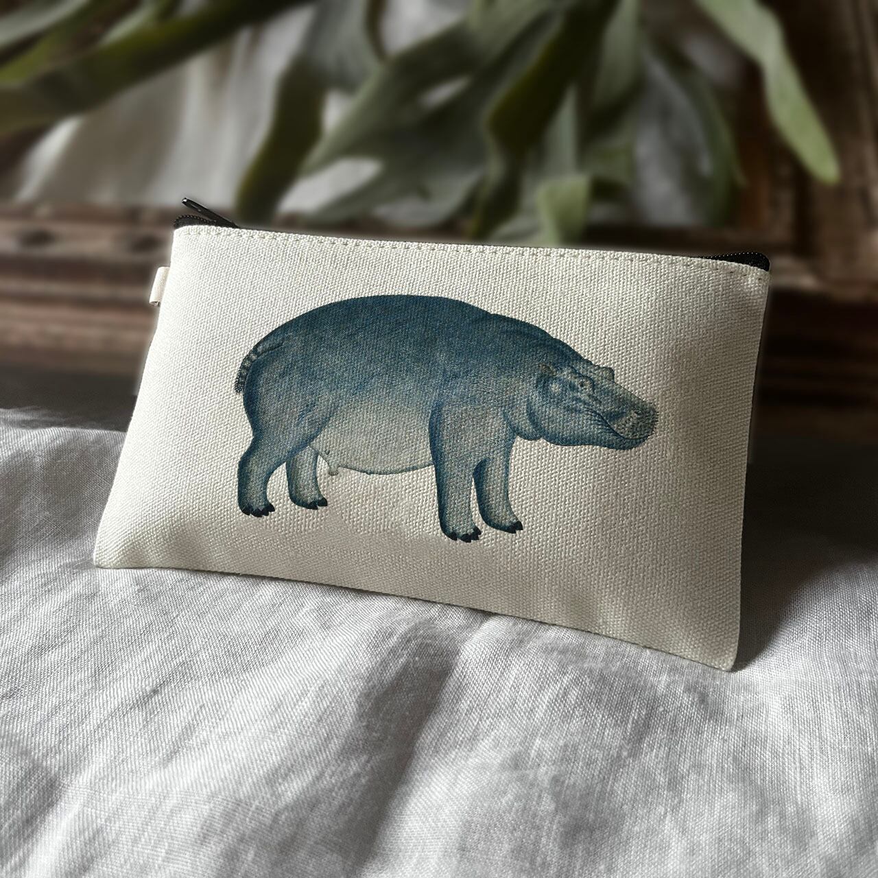 キャンバスポーチ / ロバート ジェイコブ ゴードン「カバ (1777頃)」 ポーチ 帆布 カバ 動物 アニマル イラスト 絵画 アート レトロ マット ペア 個性的 おもしろ | いきもの×アート雑貨 カイガラクラブ