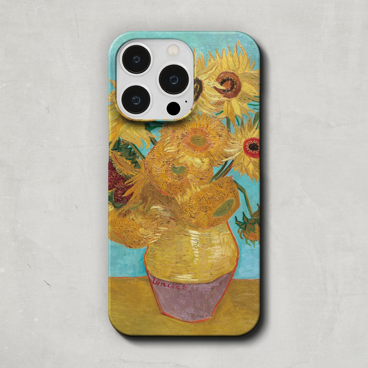 スマホケース / フィンセント ファン ゴッホ「ひまわり-12本のひまわり (1888-1889)」 iPhone 全機種対応 14 13 12 11 SE Pro Max Plus mini ケース カバー ひまわり 向日葵 ヒマワリ 花 フラワー 夏 名作 絵画 アート レトロ マット ペア 個性的 おもしろ | いきもの×アート雑貨 カイガラクラブ