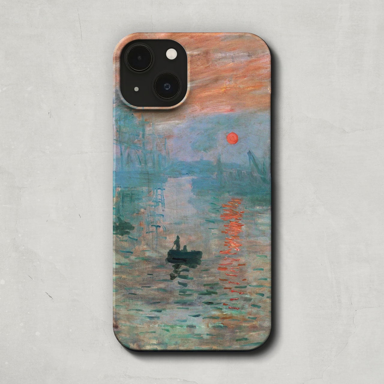 スマホケース / クロード モネ「印象 日の出 (1872)」 iPhone 全機種対応 14 13 12 11 SE Pro Max Plus mini ケース カバー 日の出 朝日 朝焼け 印象派 西洋画 名作 絵画 アート レトロ マット ペア 個性的 おもしろ | いきもの×アート雑貨 カイガラクラブ