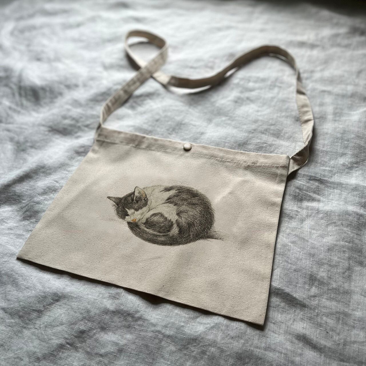 サコッシュ / ジャン ベルナール「丸まって眠る猫 (1825)」 ショルダー ねこ 猫 ネコ にゃんこ ニャンモナイト 動物 アニマル かわいい 絵画 アート レトロ マット ペア 個性的 おもしろ | いきもの×アート雑貨 カイガラクラブ