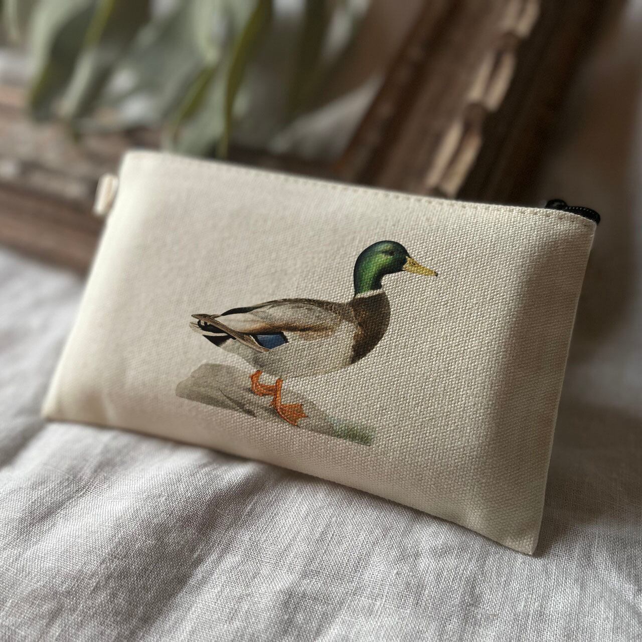 キャンバスポーチ / フォン ライト ブラザーズ「マガモ♂」 ポーチ 帆布 かも カモ 鴨 アヒル 鳥 動物 アニマル 絵画 アート レトロ マット ペア 個性的 おもしろ | いきもの×アート雑貨 カイガラクラブ