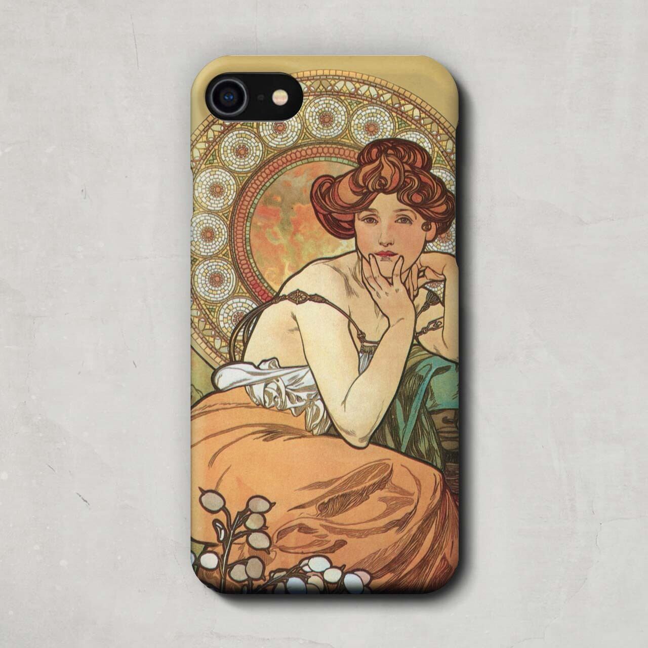 スマホケース / アルフォンス ミュシャ「宝石 - トパーズ (1900)」 iPhone 全機種対応 14 13 12 11 SE Pro Max Plus mini ケース カバー ミュシャ アール ヌーヴォー ジュエリー 花 植物 女性 名作 イラスト 絵画 アート レトロ マット ペア 個性的 おもしろ | いきもの×アート雑貨 カイガラクラブ
